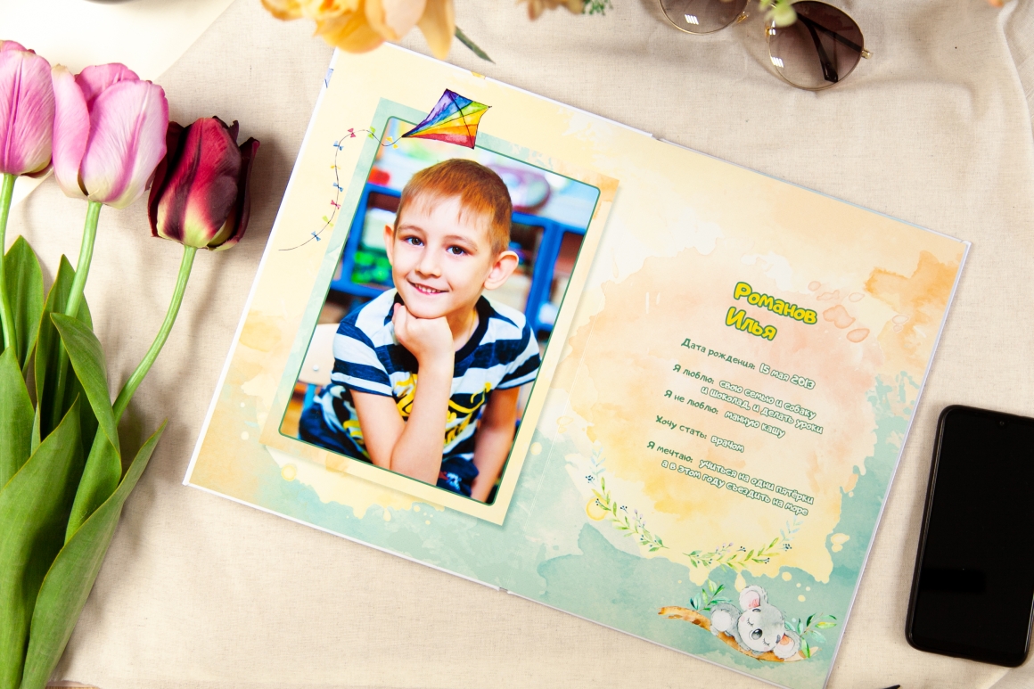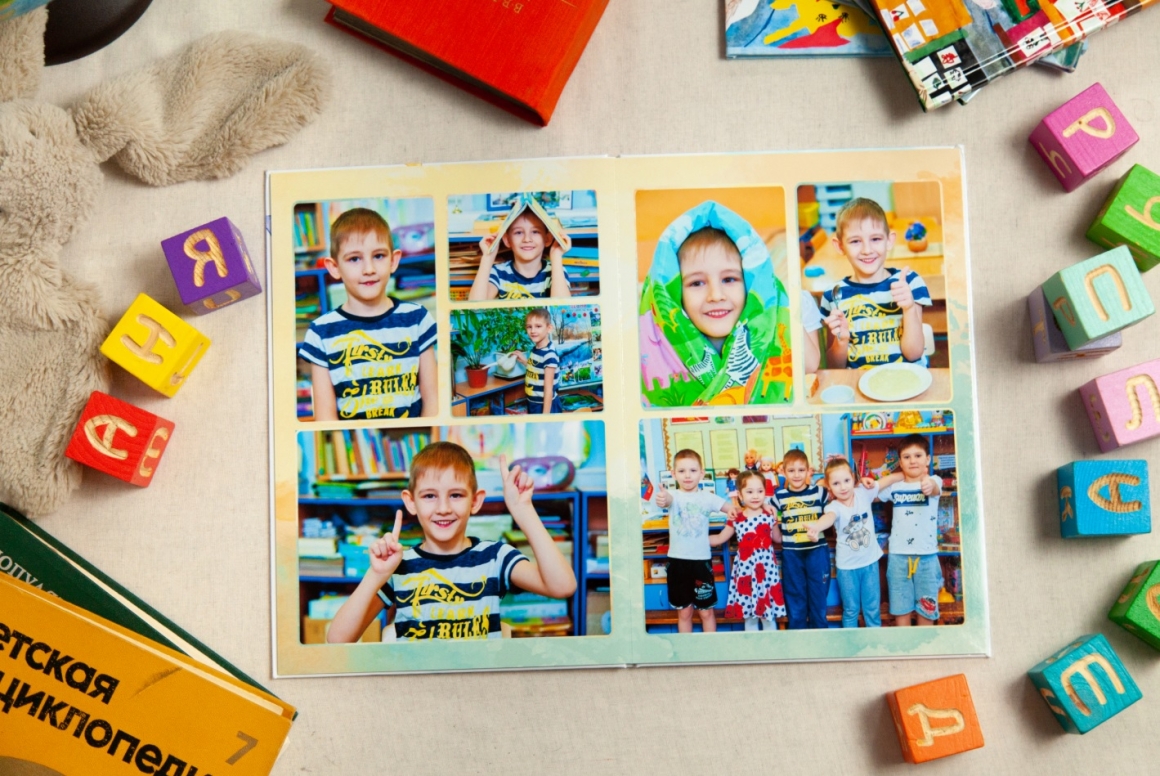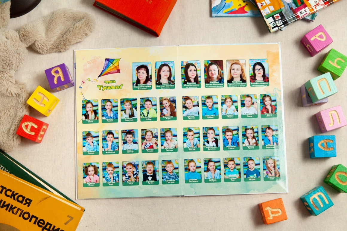 Это индивидуальный альбом. В альбоме от 4х разворотов в котором порядка 13-15 фотографий. По желанию каждый родитель может добавить дополнительные развороты в индивидуальном порядке.